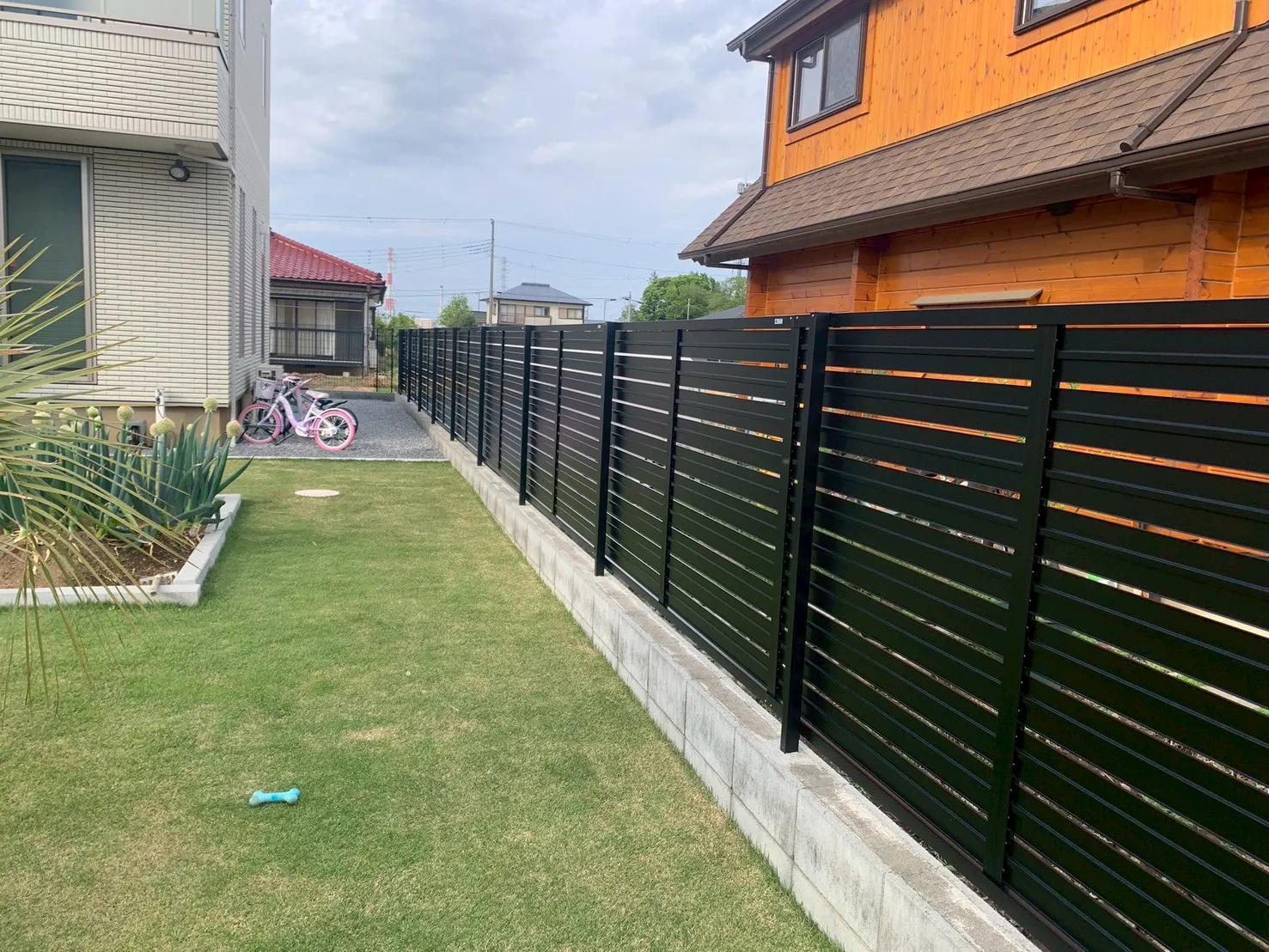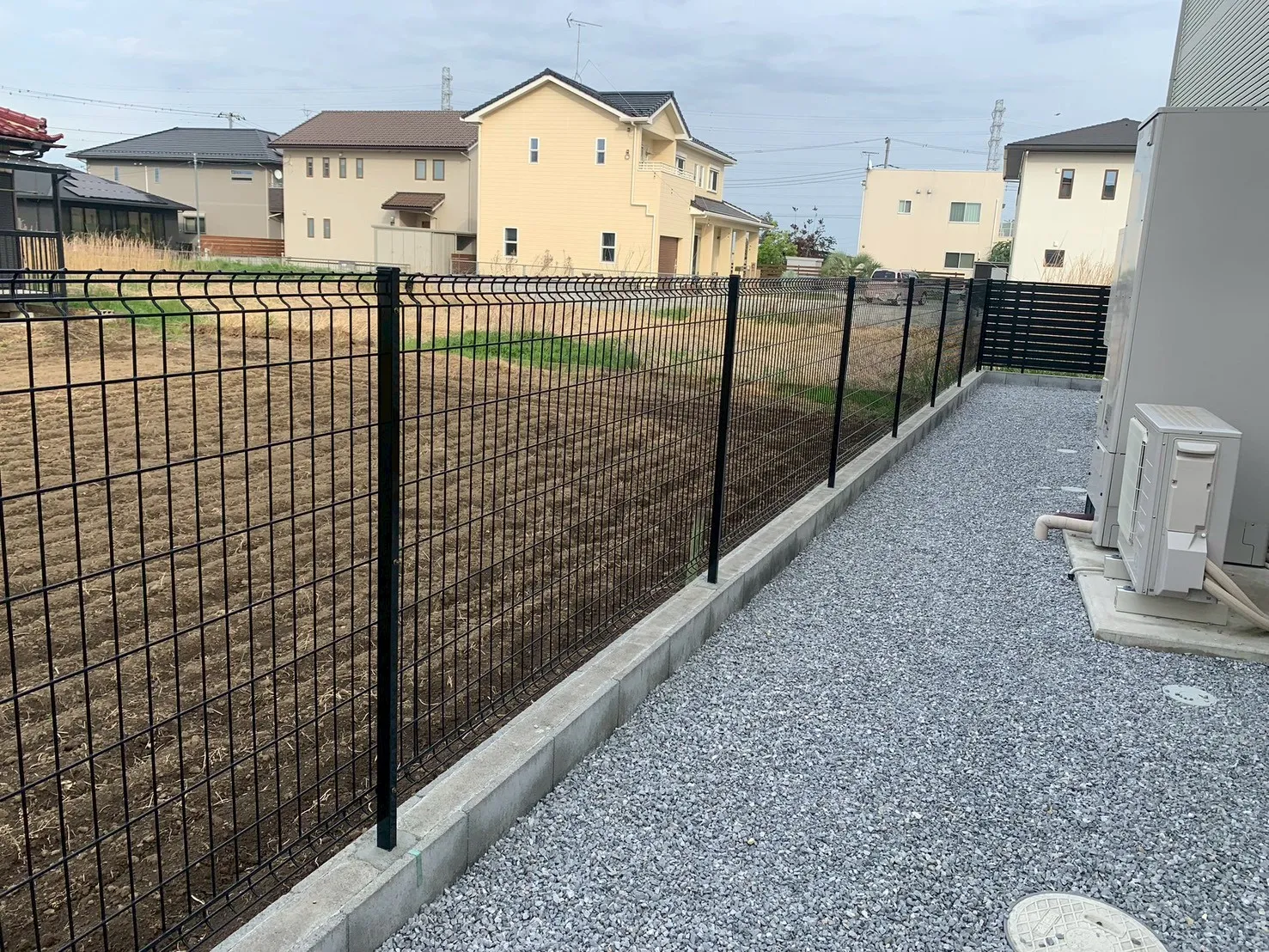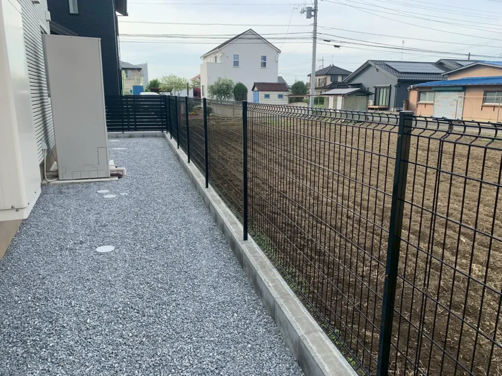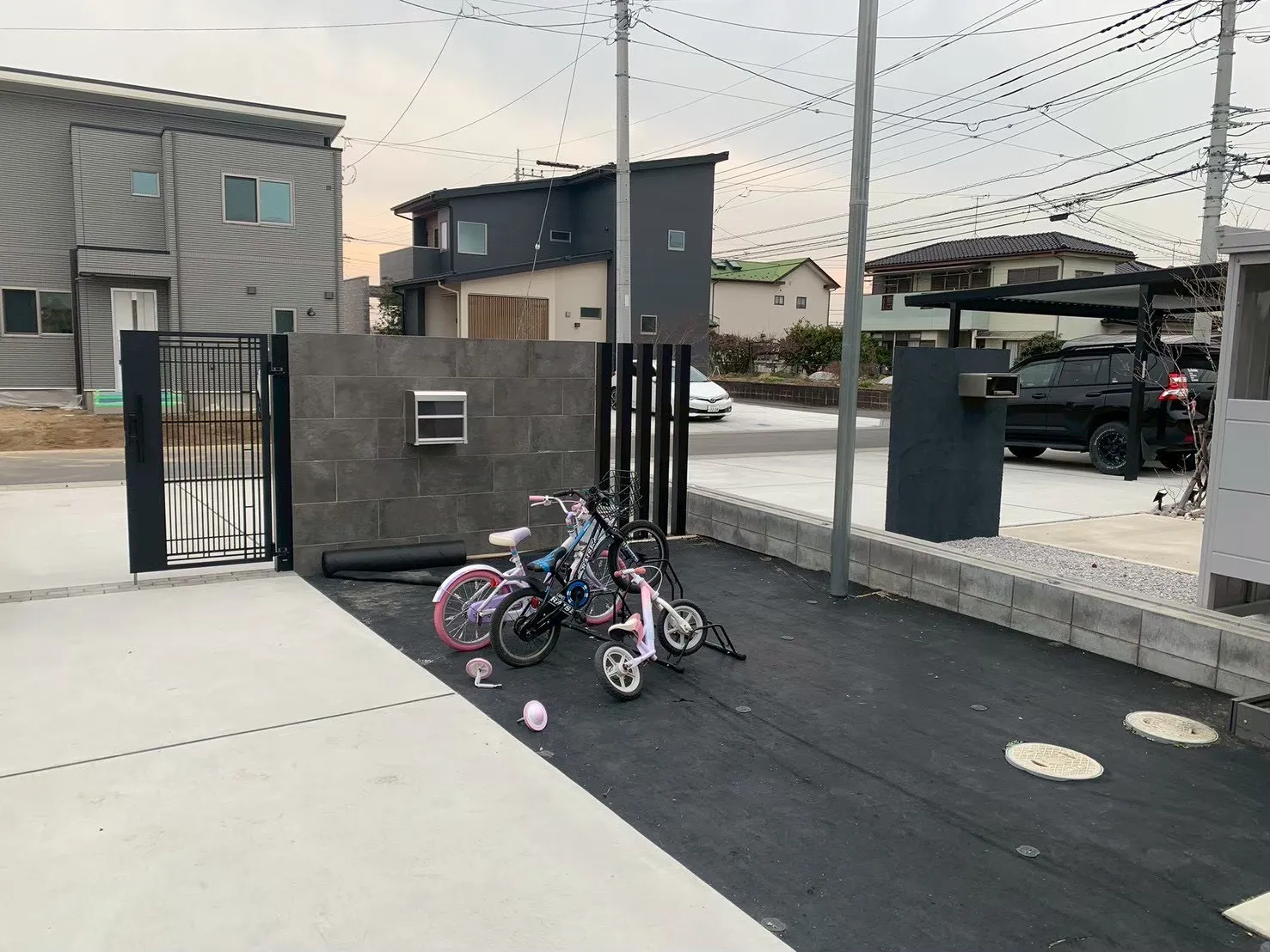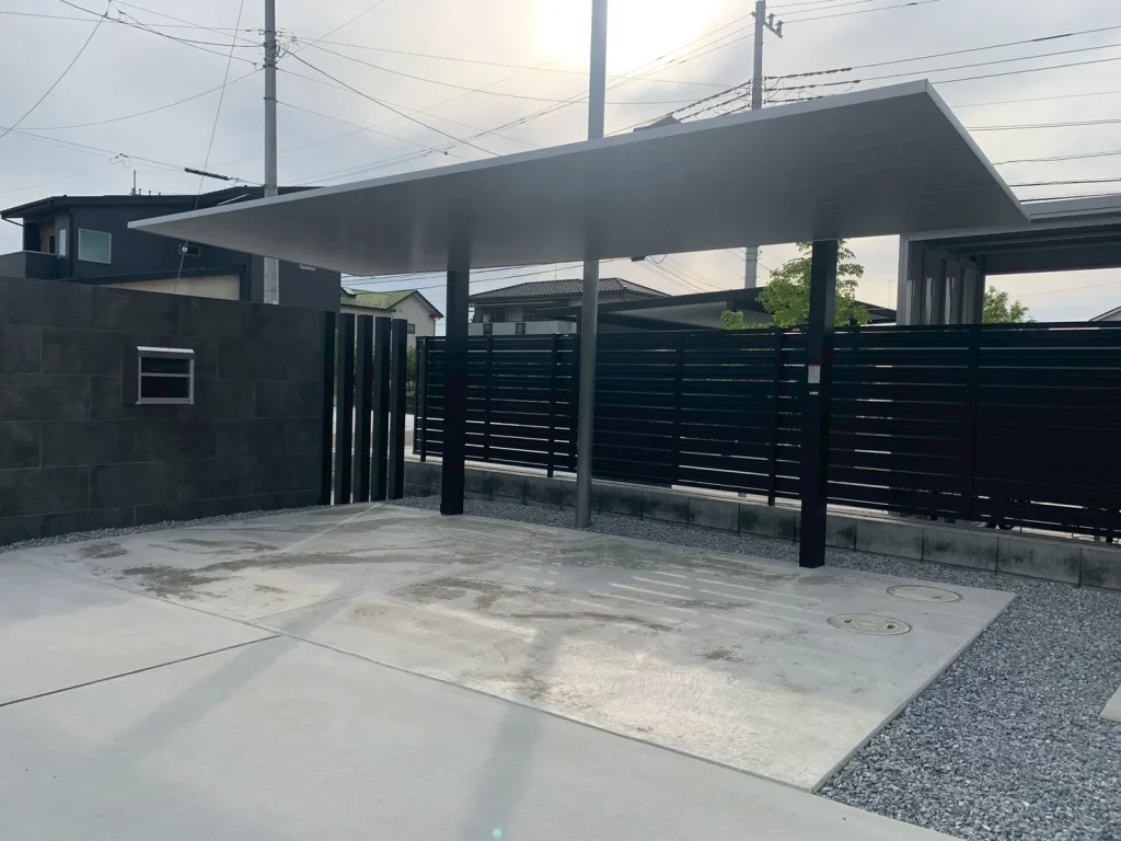 | 施工内容 | 土間コンクリート・目隠しフェンス工事(フェンスAB YS3型)・メッシュフェンス(ハイグリットフェンス)・サイクルポート(カーポートSCミニ) |