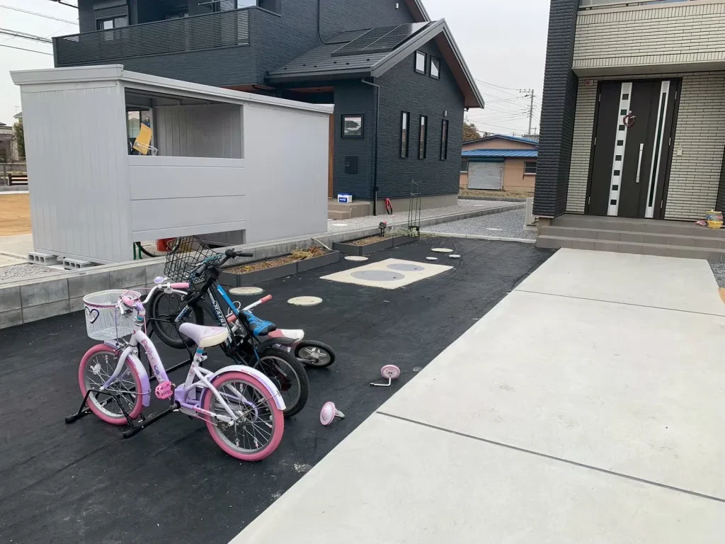 - 悩み: おしゃれなサイクルポートと雑草対策をしたい。