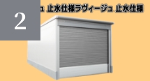 シャッターを閉めるだけで約40cmの水位まで庫内への浸水を防げる止水仕様があり、完全受注生産にてお選びいただけます。