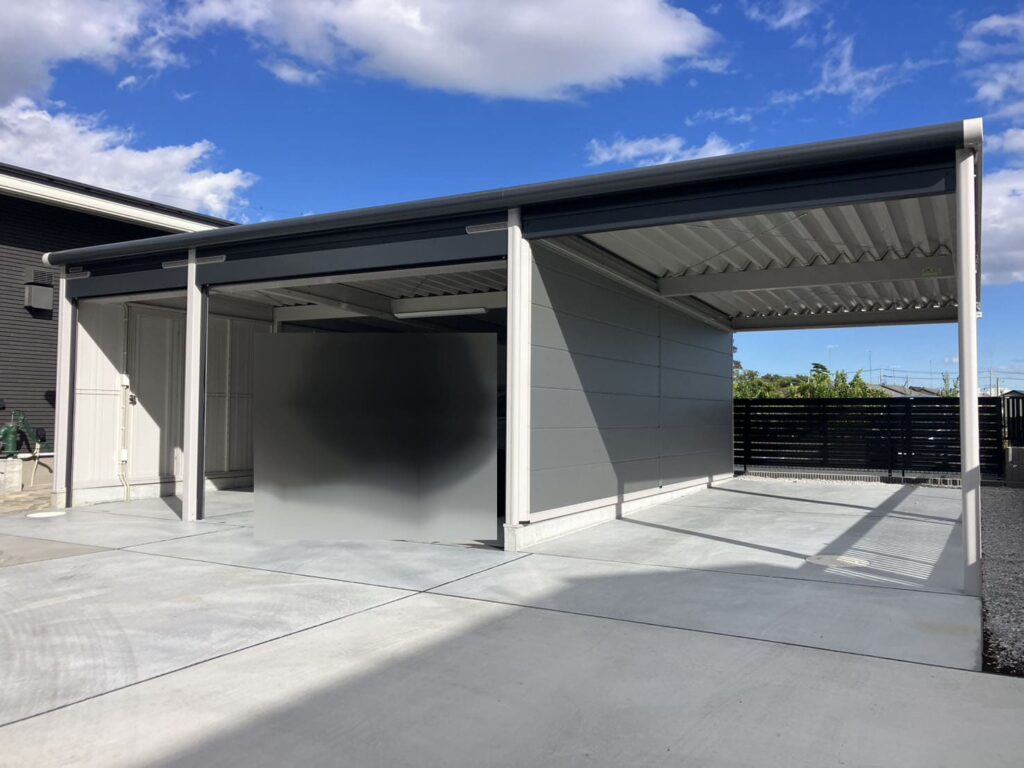 行田市の新築外構工事が完了しました。 今回は、防火地域のためしっかり防火地域仕様のガレージの施行方法で施工いたしました。 駐車場部分も雑草対策として土間コンクリートで仕上げています。愛車やバイクを保管したり移動させるのにストレスのない新築...