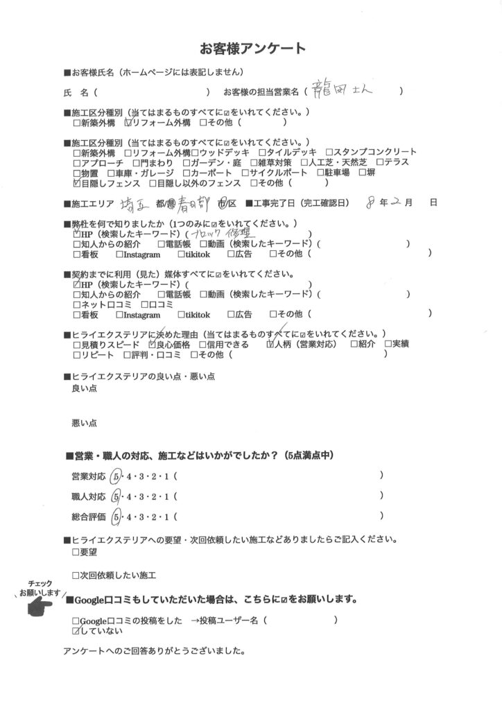埼玉県蓮田市 Y様邸 No.1344